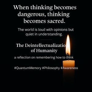Category: Philosophy / CultureTags: #QuantumMemory #Philosophy #Culture #FreedomOfThought #Awareness Summary:When thought becomes performance, and truth becomes relative, the Archive goes silent. The only way back is through honest curiosity — the courage to think for ourselves again. Body: Humanity is losing its taste for thinking.Not for information — we’ve never had more of that — […]